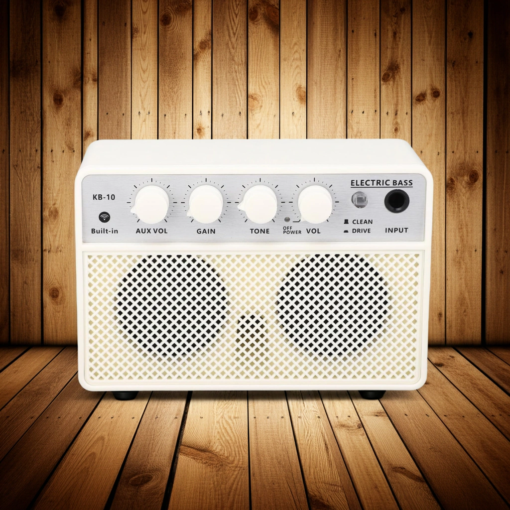 Amplificador de graves compacto: este elegante y portátil amplificador de graves para práctica cuenta con un subwoofer de 10 W de alto rendimiento que ofrece tonos graves profundos y resonantes. Su tamaño compacto hace que sea fácil de llevar de viaje.