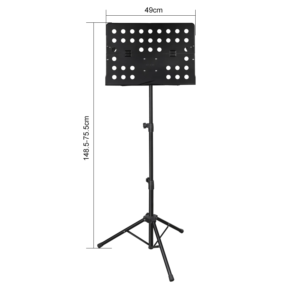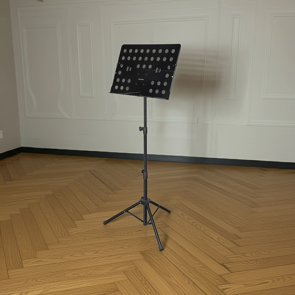 Atril plegable y con aletas para soportar hojasFabricado en AluminioPeso: 760gAltura: 75,5cm-148,5cm