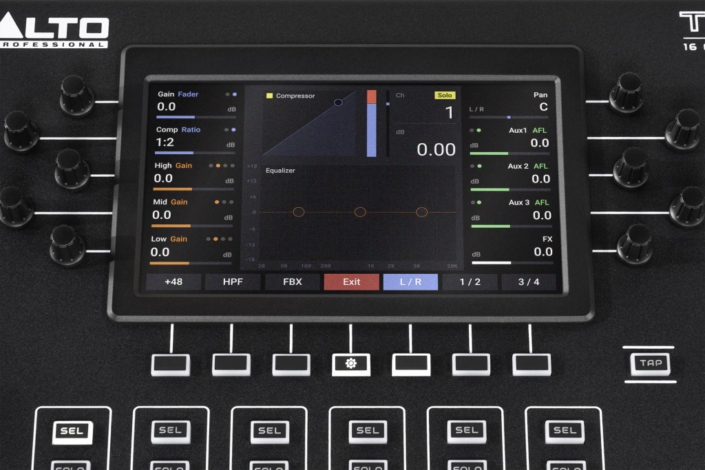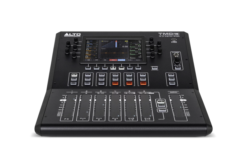 La Alto Professional TMD16 es una potente pero fácil de usar mezcladora digital de 16 canales, diseñada para sonido en vivo en pequeños locales musicales, salas de ensayo, centros de eventos, iglesias y más.