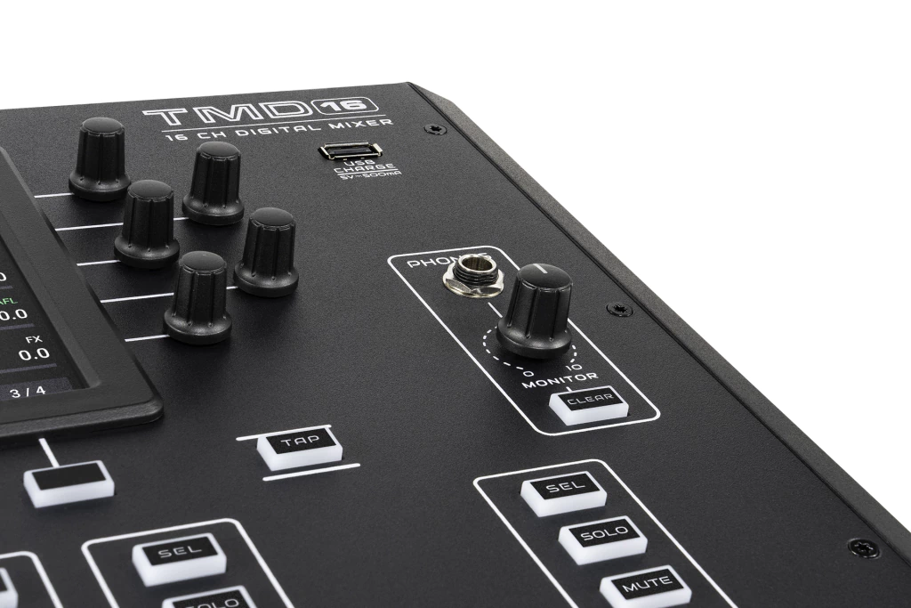 Equipada con ecualizador paramétrico, compresores en todas las entradas y salidas, efectos integrados, guardado y recuperación de presets sin complicaciones, y conectividad Bluetooth, la TMD16 ofrece una mezcla digital de calidad profesional en un formato accesible y práctico para el uso diario.