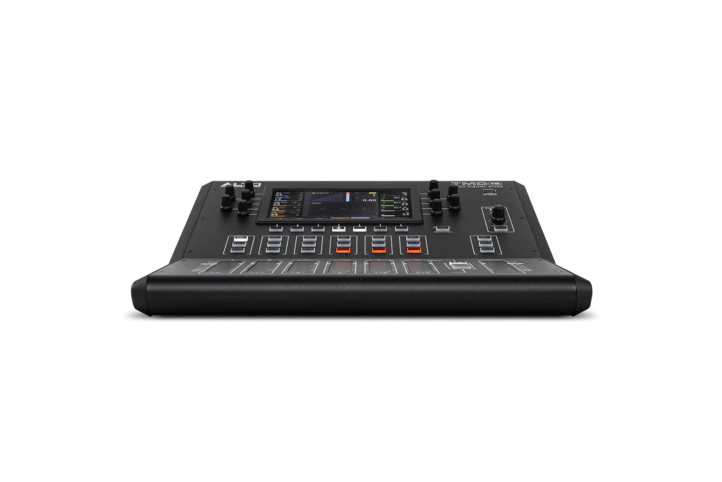 • Control manual completo con faders táctiles capacitivos de 100 mm, perillas contextuales y pantalla a color para una mezcla rápida, con retroalimentación visual clara y sin necesidad de tablet.