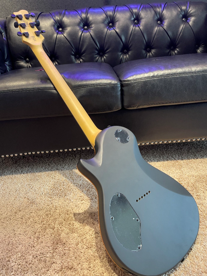 Un diapasón de ébano Macassar en un mástil de arce flameado es una combinación irresistible para el guitarrista que considera la ML2. Además del tallado de mástil en forma de C y los bordes redondeados del diapasón, hay un glorioso acabado satinado que hace que esta guitarra sea suave de tocar.