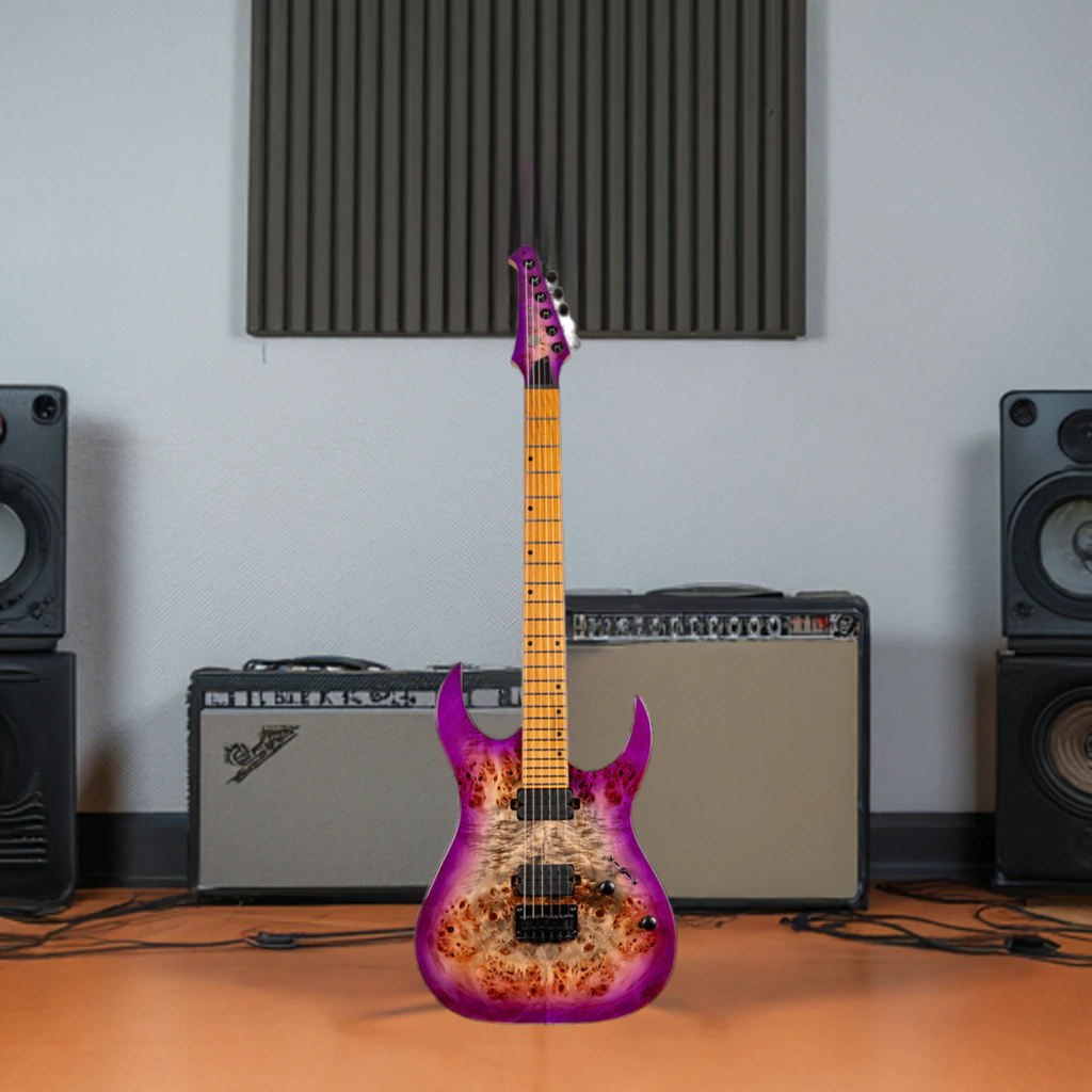 Una poderosa arma para el rock, la S-450 está meticulosamente diseñada para músicos que exigen un tono excepcional y un atractivo visual espectacular. La S-450 cuenta con un cuerpo de álamo tostado combinado con impresionantes tapas de arce brillante o álamo spalted. Su mástil de arce canadiense tostado, con forma moderna D, y su diapasón de arce tostado a juego ofrecen una experiencia de ejecución suave y rápida, perfecta para solos intrincados y riffs pesados.