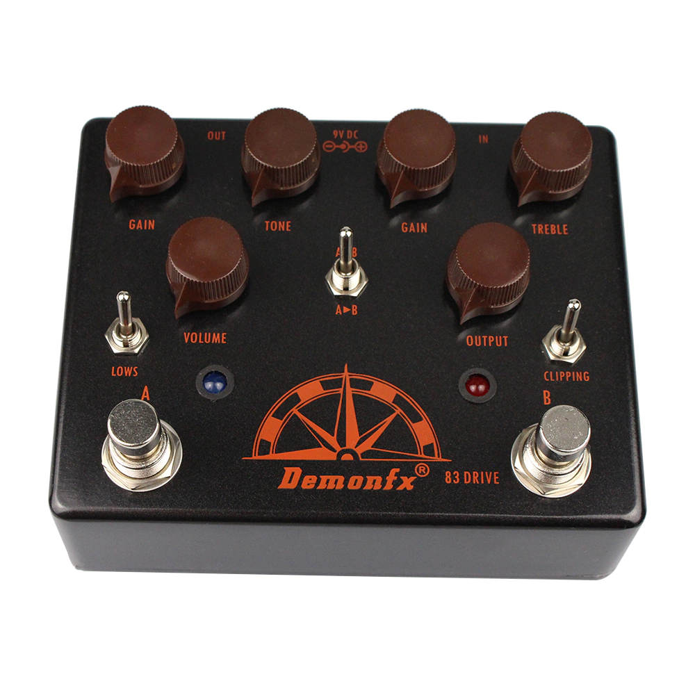 '83 Drive es un pedal dual de overdrive para guitarra y la máquina de tono definitiva, ofreciendo una variedad de tonos deliciosos. Puede ser utilizado como un tono de overdrive siempre activo, desde un tono de aumento de medios hasta un tono líder potenciado. Nuestra interpretación del legendario overdrive estilo Klon Centaur y el Black Box Bluesbreaker presenta dos overdrives independientes que proporcionan dos sonidos clásicos de overdrive preferidos por muchos guitarristas en un solo pedal.