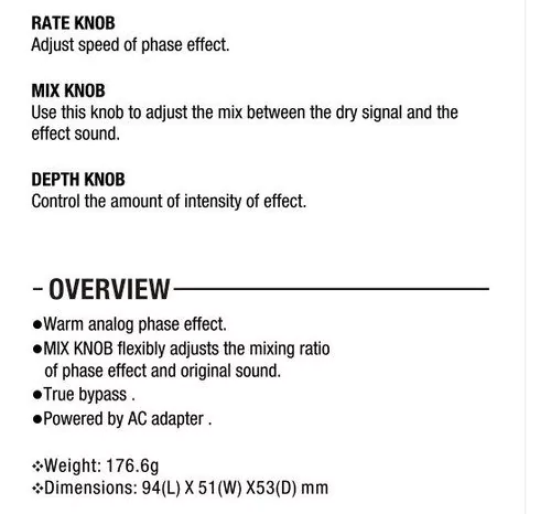 Perilla de mezcla flexible ajusta la relación de mezcla De efectos de fase y sonido original