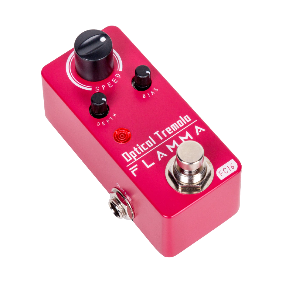 El trémolo óptico FC16 brinda una amplia gama de profundidad y velocidad en un paquete compacto de metal. Con profundidad, sesgo y una gran perilla de ajuste de velocidad, el diseño simple del FC16 permite una rápida personalización y ajuste de tono sobre la marcha. Cuando haya terminado, el circuito de derivación real garantiza un entorno libre de ruido hasta que esté listo para escuchar más de ese clásico sonido de trémolo óptico.