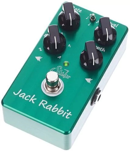 Pedal de efectos para guitarra Tremolo Controles: Rate, Level, Depth y Waveform (Sine, Square, Triangle, Reverse Ramp y Ramp) Minitoggle para conmutar cuartos, octavos de nota y triplete